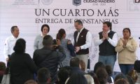 El alcalde Adrián Oseguera Kernion, entregó constancia de construcción a 175 familias maderenses beneficiadas con el programa “Un Cuarto Más” (2018). Un programa federal de la Secretaría de Desarrollo Agrario, Territorial y Urbano (Sedatu), que busca mejorar la calidad de vida brindando un espacio digno en los hogares.