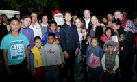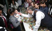 Luego de escuchar las melodías navideñas de la Banda Municipal y divertir a los niños con las acrobacias de los b-boys, el munícipe junto a su familia entregó regalos a la ciudadanía.