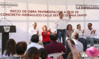 En esta ocasión, correspondió a la colonia Sahop donde se dio banderazo de arranque a los trabajos de pavimentación a base de concreto hidráulico y obras complementarias de la calle Sexta entre Tercera y Cuarta avenida, resultando directamente beneficiados cerca de cien vecinos.