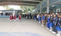 Esta ocasión y en el marco del Día Mundial de la Educación, el acto cívico fue llevado a cabo en la secundaria general No. 3 “Valentín Gómez Farías” donde se rindió honores a la bandera con la presencia de elementos de la Secretaría de la Defensa Nacional (Sedena) como parte del programa federal “Fortalecimiento Ciudadano 2019”.