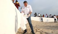 Al hacer uso de la palabra, el edil maderense reconoció el compromiso de las más de mil personas de instituciones escolares, industrias y empresarios de la zona conurbada, reunidos en plaza Gobernadores para desplegarse a lo largo de playa Miramar y recolectar un total de poco más de 20 toneladas de basura.