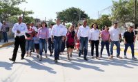 “No hemos parado en obra pública, estamos trabajando intensamente por brindarles mejores calles, y no solo eso, estamos embelleciendo nuestras lagunas y haciendo obra pública en escuelas: techumbres, baños, bardas, impermeabilización”, puntualizó Oseguera Kernion quien fue acompañado en la inauguración por la diputada federal Olga Sosa Ruiz, síndicos, regidores y directores municipales.