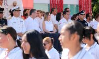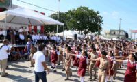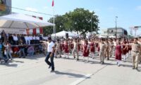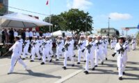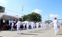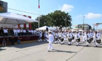 La avenida Álvaro Obregón se engalanó con la marcha de elementos de la Secretaría de Marina (Semar) a través de la Primera Zona Naval, la Guardia Nacional, la Policía Federal, Policía Estatal, Tránsito y Vialidad, Protección Civil, así como 23 contingentes académicos llevando en alto el nombre de su institución.