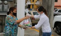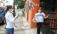 De casa en casa, la presidenta del Sistema DIF Madero, Sra. Ana Cristina Organista de Oseguera, hizo entrega de apoyos alimentarios a personas con discapacidad que acuden al CRI a tomar terapia de rehabilitación.