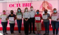 Dentro de las actividades alusivas al mes de octubre, el Presidente Municipal y la titular del organismo asistencial, vaciaron en un contenedor tapitas de plástico, mismas que serán entregadas a la fundación “Ponte las Alas A. C.”, organismo que se encargará de cambiarlas por tratamientos y medicamentos para mujeres y hombres que padecen cáncer de mama.