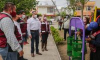 Al dar seguimiento a este programa en el que se da mantenimiento permanente a más de 60 espacios recreativos, el Presidente Municipal acudió a la plaza Carrillo Puerto para supervisar el avance de las cuadrillas de Servicios Públicos.