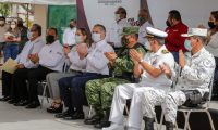 Acompañaron al Presidente Municipal en el presídium, el secretario de Ayuntamiento, Juan Antonio Ortega Juárez; el coronel de Infantería D.E.M Nicasio Solís Doroteo, comandante del 15/o. Batallón de Infantería; el capitán de navío aeronáutica naval piloto aviador D.E.M Marco Antonio Sánchez Juárez, representante de la Primera Zona Naval; el capitán Raúl Meneses Ramírez, coordinador regional de la Guardia Nacional, así como autoridades de la policía Estatal, Protección Civil y Tránsito.