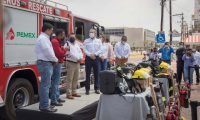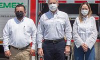 “Quiero agradecer a Petróleos Mexicanos y al Presidente de la República, Andrés Manuel López Obrador, por dotarnos de este camión que cuenta con todo lo necesario para atender contingencias. Es de gran importancia contar con una unidad como esta, es de lo más avanzado que hay para actuar en incendios y rescates”, aseguró Oseguera Kernion, acompañado por su esposa, la Sra. Ana Cristina Organista de Oseguera, presidenta del DIF Municipal.