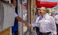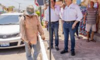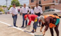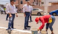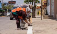 Ahí, verificó el avance en materia de limpieza y aplicación de pintura en guarniciones y banquetas que son efectuadas por cuadrillas municipales.