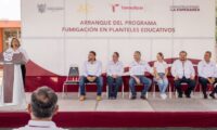 En ese contexto, el Presidente Municipal acompañado de su esposa, la Sra. Ana Cristina Organista de Oseguera, acudió al Cbtis 164, ubicado en la colonia Ampliación Unidad Nacional, donde dio el arranque a este importante programa de fumigación en planteles escolares.
