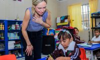 "Las maestras están comprometidas con la niñez y con su educación, mi reconocimiento es para ellas, por seguir trabajando como hasta ahora, por el bienestar de nuestras niñas y niños", expresó.