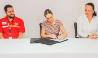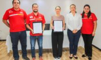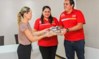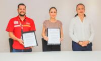 La primera dama en el municipio, se reunió con Eduardo Mateos Maulen, gerente general de plaza de tiendas Oxxo, Erika Cristina Sánchez Garza, titular de Recursos Humanos, así como con Alfredo Israel Navarro Fernández, coordinador laboral, para llevar a cabo la firma de un convenio de colaboración.