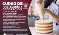 En esta ocasión, explicó, se llevará a cabo el Curso de Pastelería y Decoración del 15 de agosto al 5 de septiembre, todos los jueves de 10:00 a 14:00 horas en el CDC Ampliación Candelario Garza.