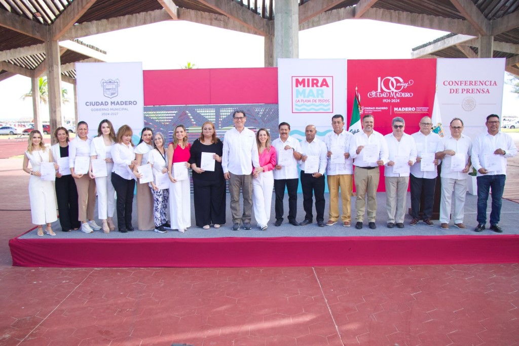 Por la mañana en Plaza Gobernadores en Miramar, definida como la Playa de Todos, Erasmo González Robledo acompañado de su cuerpo edilicio de Síndicos y Regidores hizo un amplio reconocimiento a las mujeres, al entregar nombramiento por vez primera en el municipio a un equipo de colaboradoras, donde 8 mujeres integran parte importante de su gabinete Direcciones Generales, lo que significa esta gobierno paritario al servicio de todos los maderenses.