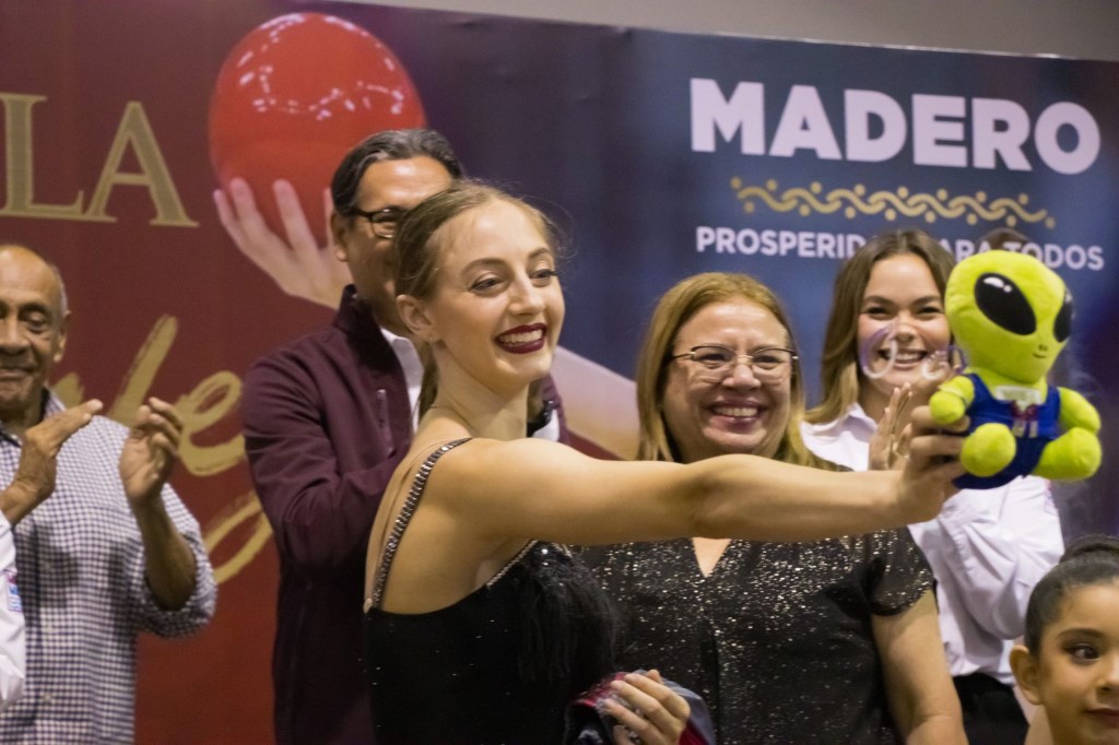 Con gran éxito se presentó la medallista olímpica en París 2024, en la disciplina de gimnasia rítmica, la búlgara Boryana Nikolaeva, en el Auditorio Municipal de Ciudad Madero “Américo Villarreal Guerra”, evento en el que estuvieron presentes el alcalde Erasmo González Robledo y la presidenta del Sistema DIF municipal, Licenciada Dunia Marón Acuña.