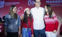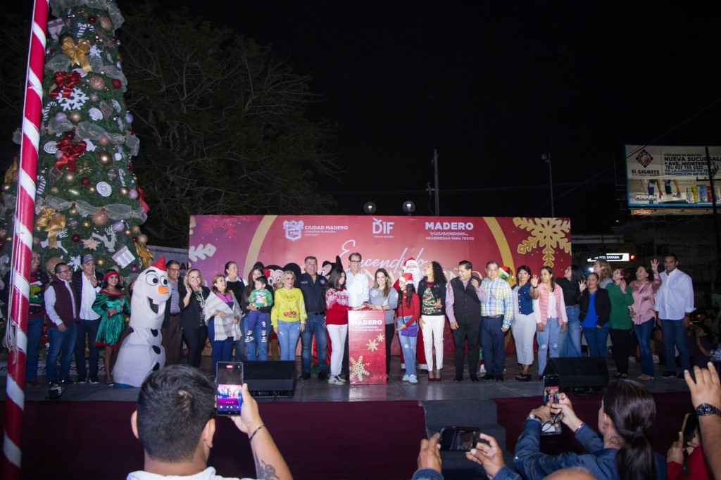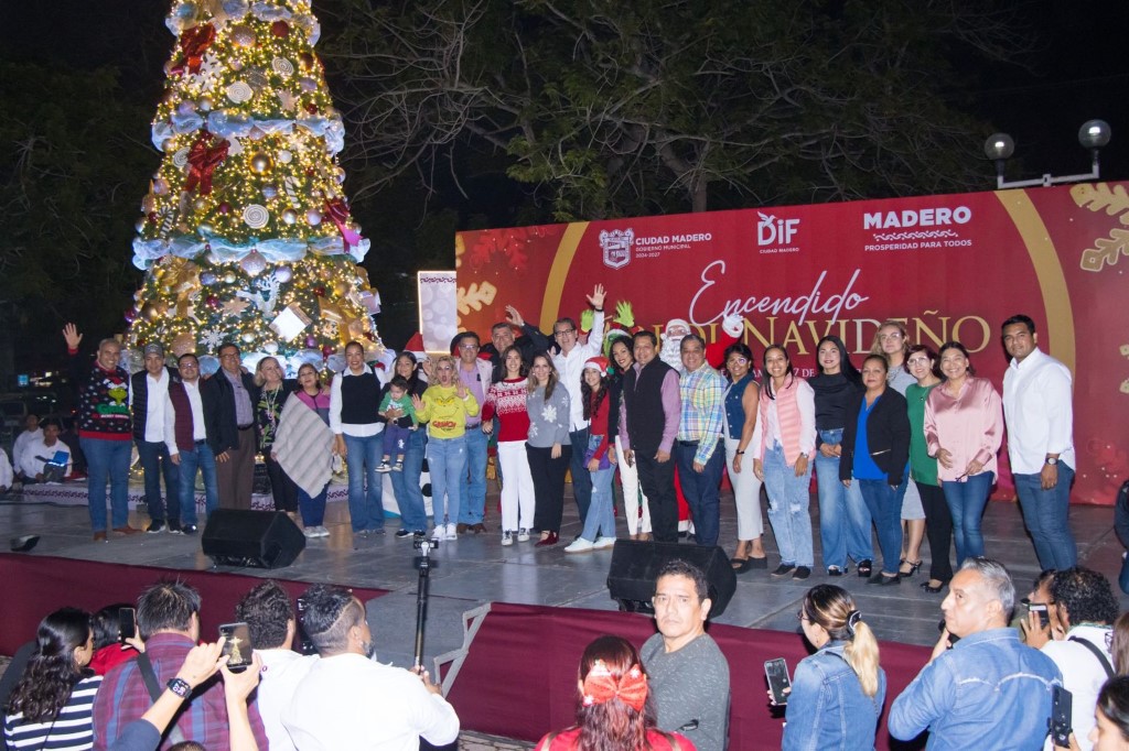 El presidente municipal Erasmo González Robledo, junto a su esposa Dunia Marón Acuña y sus hijas Ana Victoria y María Eliza, así como decenas de familias de Ciudad Madero, llevaron a cabo el encendido del pino navideño, en una fiesta llena de alegría donde participaron niños y adultos mayores en una serie de celebraciones ante la llegada de la navidad.