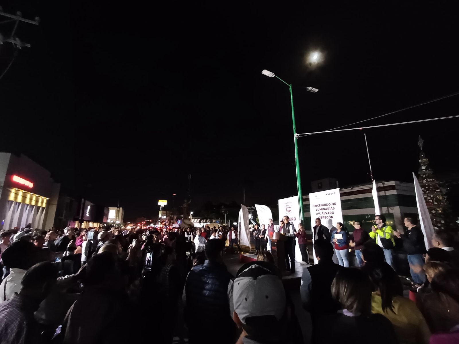 El presidente municipal Erasmo González Robledo, reafirmó su compromiso con los maderenses al inaugurar un moderno sistema de iluminación en la Avenida Álvaro Obregón, esto como parte de un amplio programa de sustitución de más de mil lámparas, adquiridas con una estimación presupuestal del orden de los 6 millones 820 mil pesos, que además de los circuitos ya en su transformación, se ampliará hacia otras vialidades en diversos sectores del municipio.