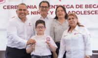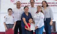 Posteriormente, el presidente municipal Erasmo González Robledo, procedió a realizar la entrega simbólica a los estudiantes de los niveles de educación especial y primaria, inscritos en escuelas públicas para el ciclo escolar 2024-2025, donde en representación de los becarios, el alumno Rodolfo Salas Álvarez, de la escuela primaria “José Guadalupe Martínez Mireles”, agradeció este beneficio para continuar sus estudios.