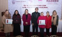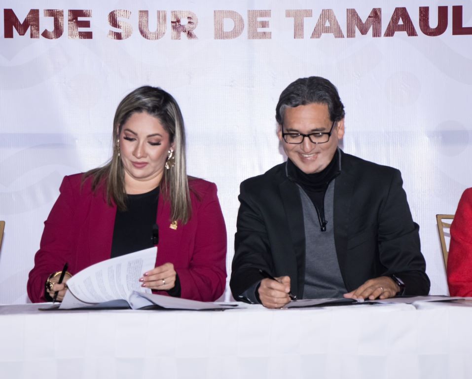 La firma del convenio de colaboración fue atestiguada por la presidenta del Consejo Consultivo de AMMJE en el sur de Tamaulipas, Martha Llanes López; Yazmín Santiago Barrios, directora general de Desarrollo Económico, así como por síndicos y regidores.