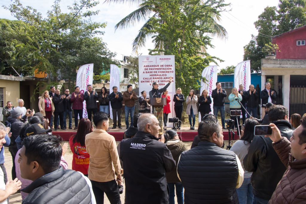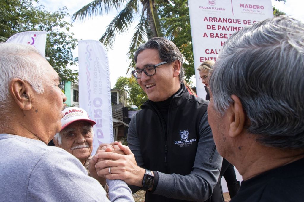 En el Ayuntamiento de Ciudad Madero, nuestra labor consiste en continuar progresando, cumplir con más compromisos e iniciar nuevas obras de pavimentación con concreto hidráulico; volver a reencontrarnos con las familias de la calle Ramos Arizpe de la colonia Lucio Blanco, esta experiencia nos motiva; estamos aquí con el Cabildo completo para colaborar en equipo, y firmemente convencidos de que, al igual que en los primeros 100 días de resultados en beneficio de los maderenses, aún queda un largo camino por recorrer, afirmó Erasmo González Robledo.