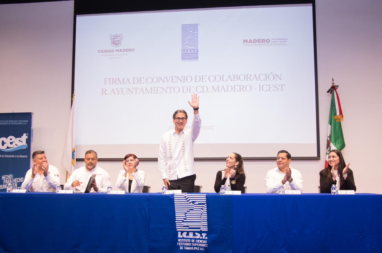 Dentro de este importante convenio incluye la oferta de becas para los trabajadores municipales y sus hijos, facilitándoles el acceso a una amplia gama de programas académicos y cursar sus estudios en los campus del ICEST, en la modalidad presencial o en línea. El presidente municipal, resaltó el compromiso que tiene el Ayuntamiento de Ciudad Madero con su comunidad, agregando la importancia de incluir a la juventud en diversos proyectos.