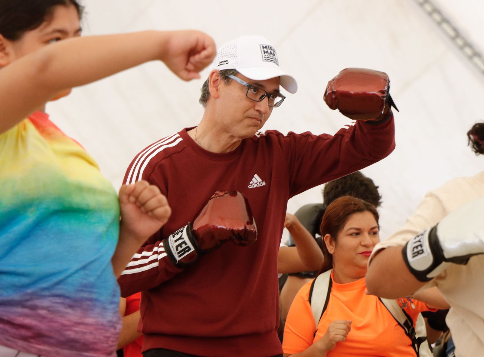 Erasmo González, que insistió a ser parte de esta convocatoria, aseguró que se implementarán distintas rutinas de sincronización con golpes rectos y curvos, como jabs, cruzados y uppercuts; movimientos de cintura; manejo de pies y guardias altas y bajas, para que las y los asistentes practicaran los movimientos básicos de un pugilista, pero lo más importante sumarse a este tipo de deporte por la paz.