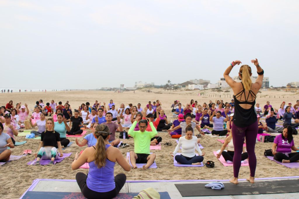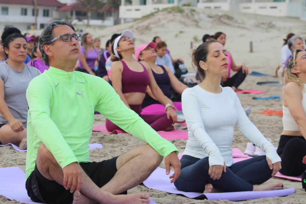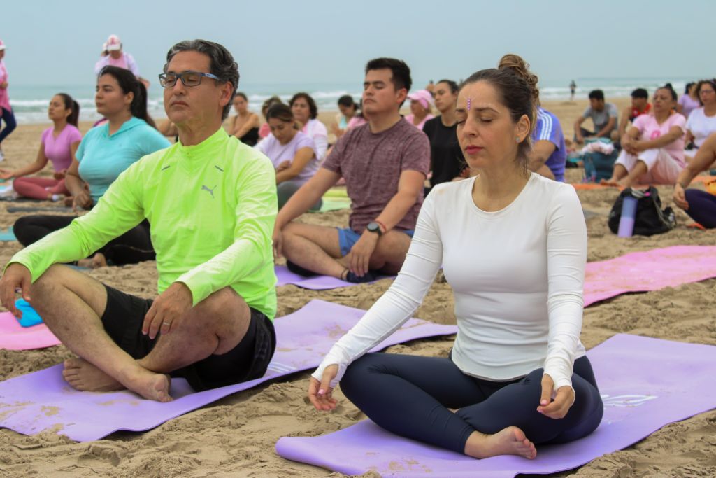 Desde las primeras horas de la mañana, los asistentes se congregaron en la playa para participar en esta actividad, diseñada para fortalecer el cuerpo, calmar la mente y fomentar la paz interior. La práctica estuvo guiada por las instructoras Pamela Ayala y Sandra Barrios, quienes compartieron ejercicios y técnicas de respiración para mejorar la salud física y emocional de los participantes.