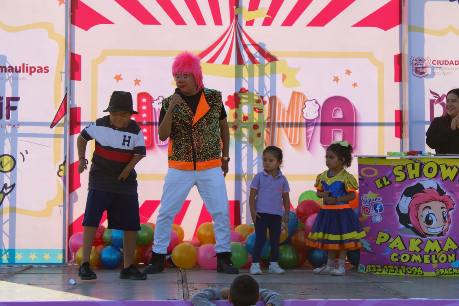 Durante el evento, la Lic. Dunia Marón Acuña y el presidente municipal Erasmo González Robledo, brindaron una cálida bienvenida a los más de mil niños ahí reunidos, quienes pudieron disfrutar de amenidades como enormes inflables, módulos de juegos tradicionales, de snacks y un divertido espectáculo de payaso.