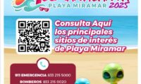 El presidente municipal Erasmo González Robledo presentó un cartel que incluye un código QR, diseñado para facilitar el acceso a una guía turística que resalta hasta 28 puntos de interés en Miramar, la playa de todos, para los visitantes que llegarán durante la Semana Santa. Esta guía destaca lugares significativos, como la Playa Incluyente, que está adaptada para personas con diferentes discapacidades, así como sitios emblemáticos y tradicionales del principal paseo y la ubicación de los 12 módulos y sus colores frente a zona de playa.