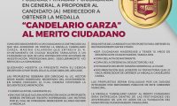 El Gobierno Municipal de Ciudad Madero convoca a todas las instituciones públicas, privadas y ciudadanía en general, a proponer al candidato (a) merecedor a obtener la Medalla Candelario Garza al Mérito Ciudadano, conforme a lo establecido a la convocatoria que aquí se deja a su disposición; la recepción de propuestas estará de los días 21 al 25 del presente mes de abril de 2025.