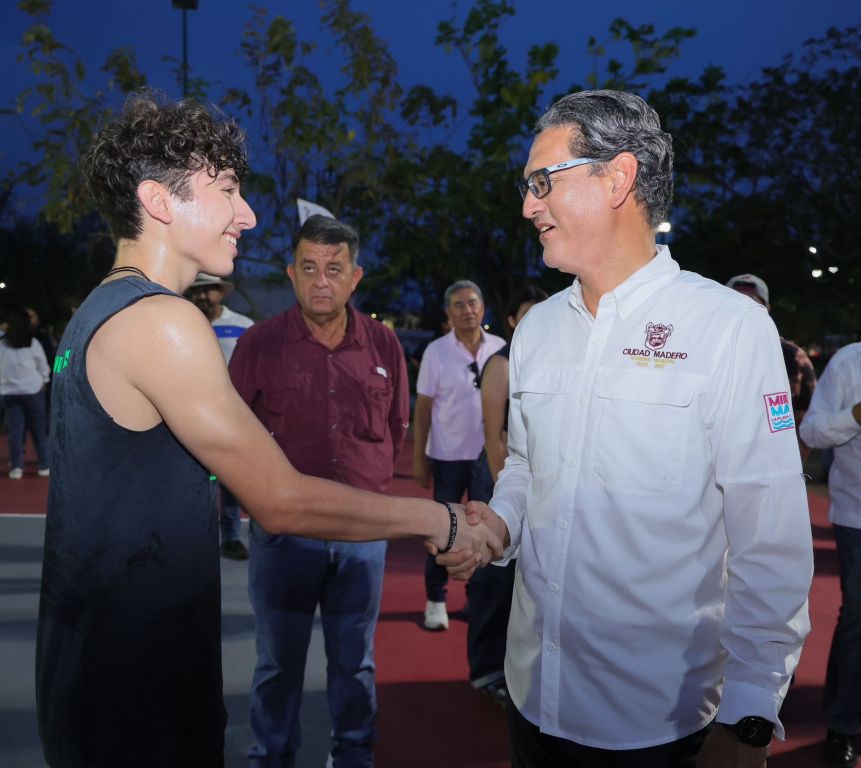 “En el Gobierno Municipal estamos comprometidos con el deporte, si nos ven aquí a todos reunidos es porque nos interesa trascender en el deporte en Ciudad Madero, -dijo ahí a deportistas, vecinas y vecinos en el parque “La Pirámide”-, pero lo que más deseamos es que nuestras niñas, nuestros niños, nuestra juventud y también las personas adultas mayores y en cualquier edad de la vida tengan acceso a las áreas deportivas en buenas condiciones”, expresó.