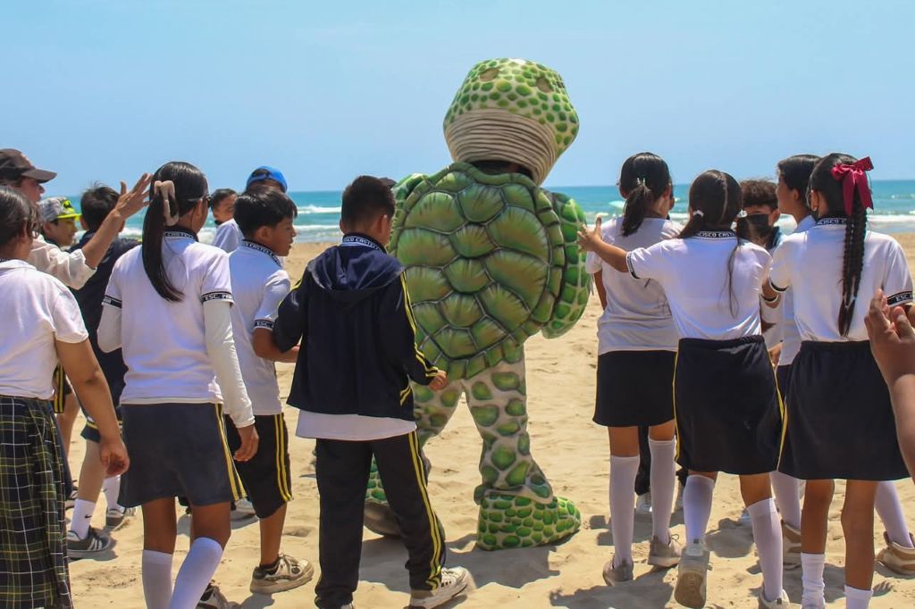 Además los niños tomaron parte en un simulacro de avistamiento de tortuga y fueron investidos simbólicamente como “Guardianes de Tortugas”, comprometiéndose a promover el respeto y la protección del entorno marino, finalizando con la aparición de “Lore”, la botarga oficial.