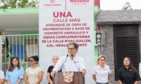 El presidente municipal Erasmo González Robledo inició la pavimentación de concreto hidráulico en las calles Profr. Genovevo Rivas Guillén y Nuevo León, ubicadas en las colonias Miguel Hidalgo Oriente y Poniente, respectivamente.