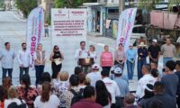 Vamos a seguir cumpliendo compromisos como lo hemos hecho en estos nueve meses de gobierno, seguir muy cerca de la gente y para el mes de julio se espera que las más de 60 acciones en su mayoría obras de pavimentación a base de concreto hidráulico. Ahí en la Lázaro Cárdenas con recursos del FAISMUN, se dio el arranque de la calle Colombia entre Aguascalientes y Sor Juana Inés de la Cruz, donde se invertirán más de 3.3 millones de pesos en 63 metros lineales. Ahí a nombre de las vecinas y vecinos, la señora Susana Amalia Chávez Salazar, reconoció la respuesta a peticiones en beneficio de este sector.