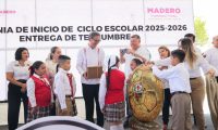 En el marco del inicio del ciclo escolar 2025-2026, el presidente municipal, Erasmo González Robledo, refrendó el compromiso de seguir impulsando la educación y el desarrollo de las alumnas y los alumnos que este lunes regresaron a clases en Ciudad Madero, durante una ceremonia efectuada en la Escuela Primaria “Sección Uno Petroleros” en la colonia Candelario Garza, donde además entregó una techumbre para beneficio de los cerca de 500 estudiantes que asisten a ese plantel en los turnos matutino y vespertino.