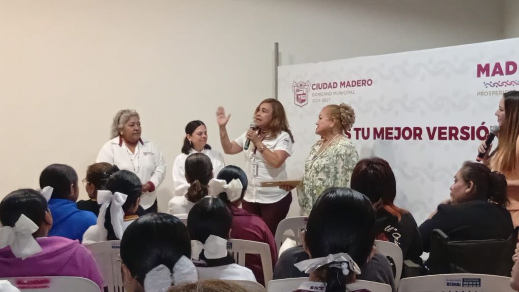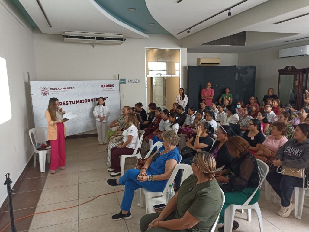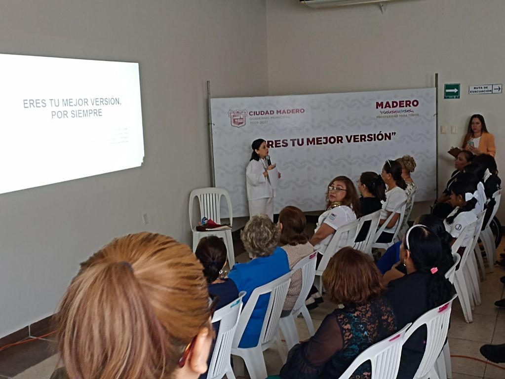 Con el propósito de fortalecer el crecimiento personal, la autoestima y el empoderamiento femenino, el Gobierno de Ciudad Madero, a través de la Dirección General de la Mujer, llevó a cabo la conferencia titulada “Eres tu mejor versión”, impartida por la Máster Rosa María Estrada Martínez, ante la asistencia de 86 mujeres maderenses.