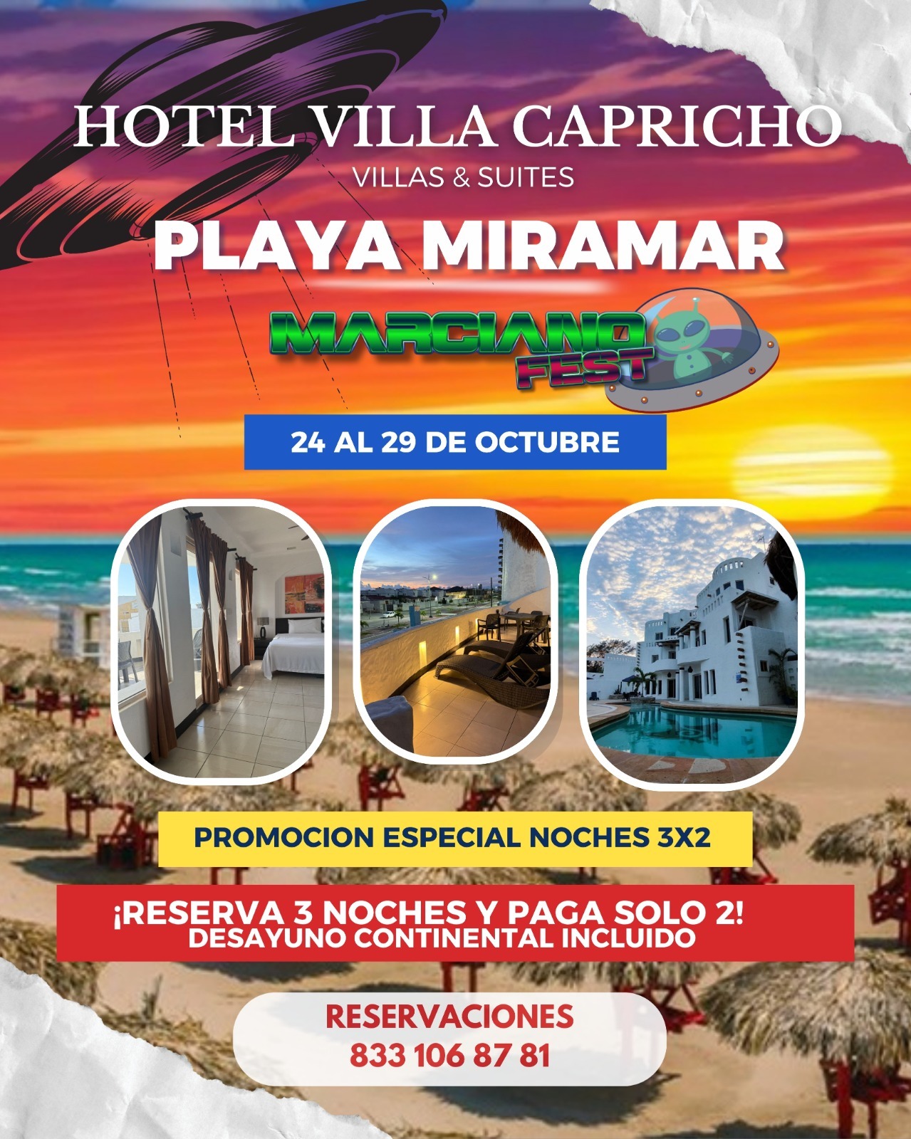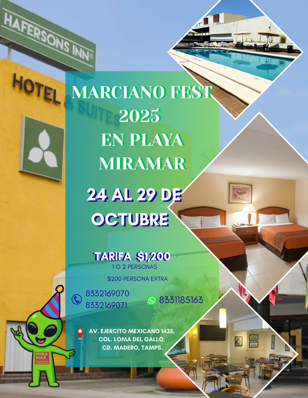 Ante el amplio interés que se ha puesto de manifiesto la celebración del Marciano Fest 2025, que tendrá lugar del 23 al 29 del presente mes, el grupo de Hoteleros de playa Miramar se han sumado a estos festejos y ofrecen paquetes muy atractivos para el turismo ufológico que asistirá a estas celebridades.