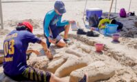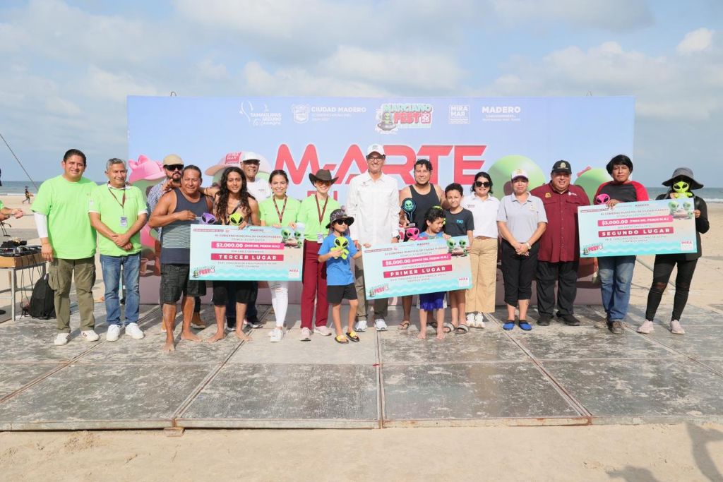 En el marco de la celebración del Marciano Fest 2025, que tuvo lugar en la pintoresca Miramar la playa de todos, se llevó a cabo el concurso de esculturas de arena "M-arte en Arena". Este evento reunió a 46 equipos compuestos por familias y aficionados al arte, quienes dedicaron más de cuatro horas a esculpir impresionantes figuras de arena inspiradas en temas espaciales y ufológicos.