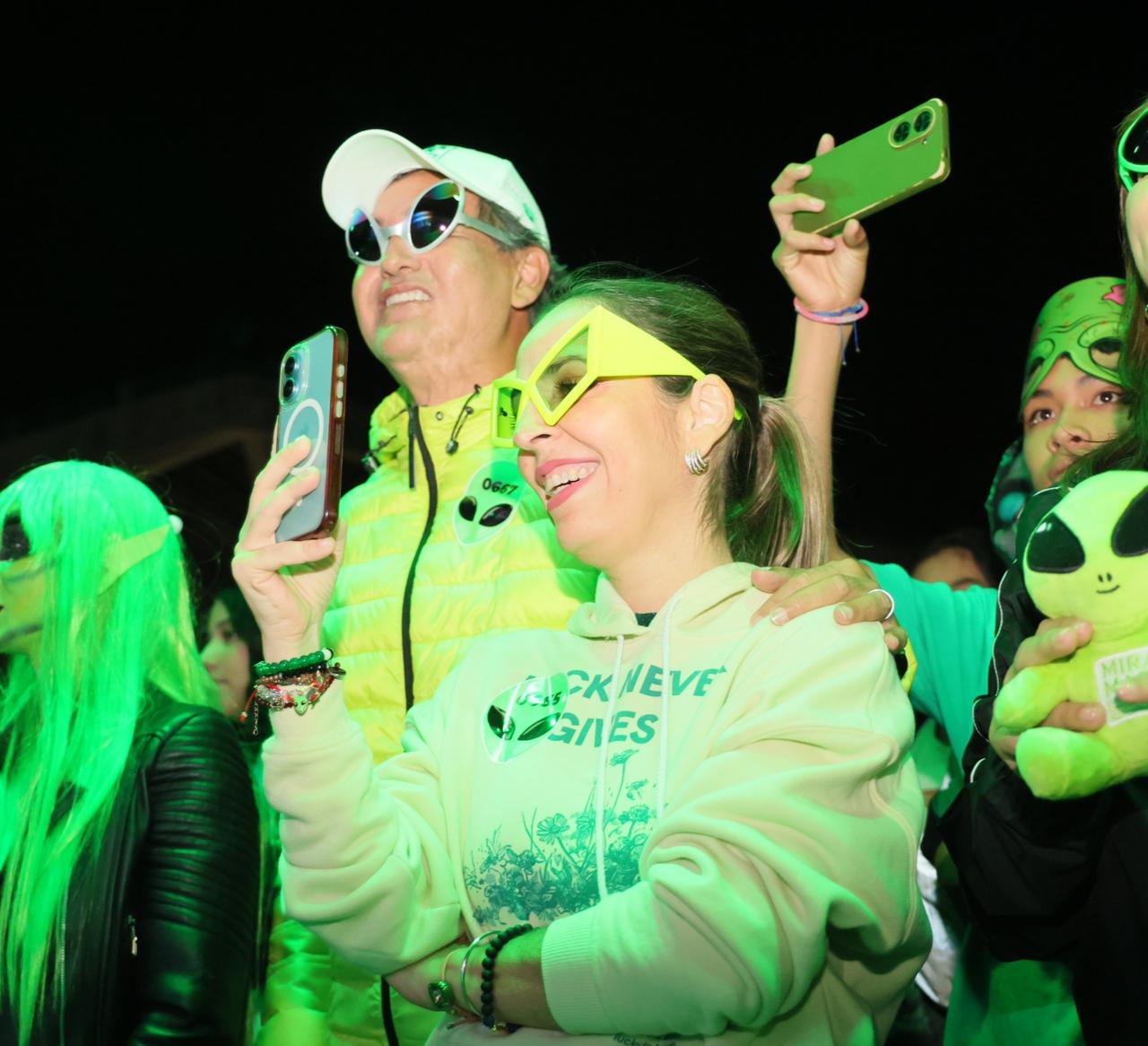 La plaza Gobernadores se transformó en un escenario de celebración, repleto de alegría, baile y diversión, comenzando con una impresionante caravana galáctica que presentó numerosos automóviles adornados como naves espaciales. A continuación, el público disfrutó de diversas exhibiciones de baile y del esperado Marciano Challenge, una dinámica colectiva que fusionó coreografías con actividades interactivas, permitiendo que los participantes se sintieran como seres de otra galaxia. Este evento culminó con el establecimiento de un récord oficial de 947 caracterizaciones, destacándose como el momento más significativo de la celebración.