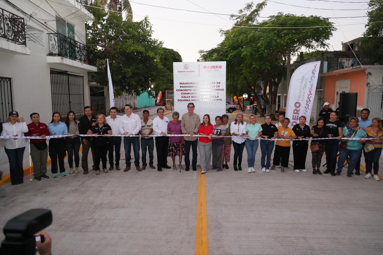 El presidente municipal Erasmo González Robledo, junto a su esposa Dunia Marón Acuña, presidenta del sistema DIF, anunció la inauguración de tres nuevas calles en el sector Los Pinos y la colonia Miguel Hidalgo Poniente, con una inversión que supera los 6 millones de pesos. Esta obra busca transformar las vialidades y mejorar el acceso a los hogares. Destacó que esta iniciativa forma parte de las 66 acciones en curso en la ciudad, en el marco del programa de inversión pública 2025, que cuenta con un presupuesto incrementado a 215 millones de pesos, destinado a promover el bienestar de la comunidad maderense.