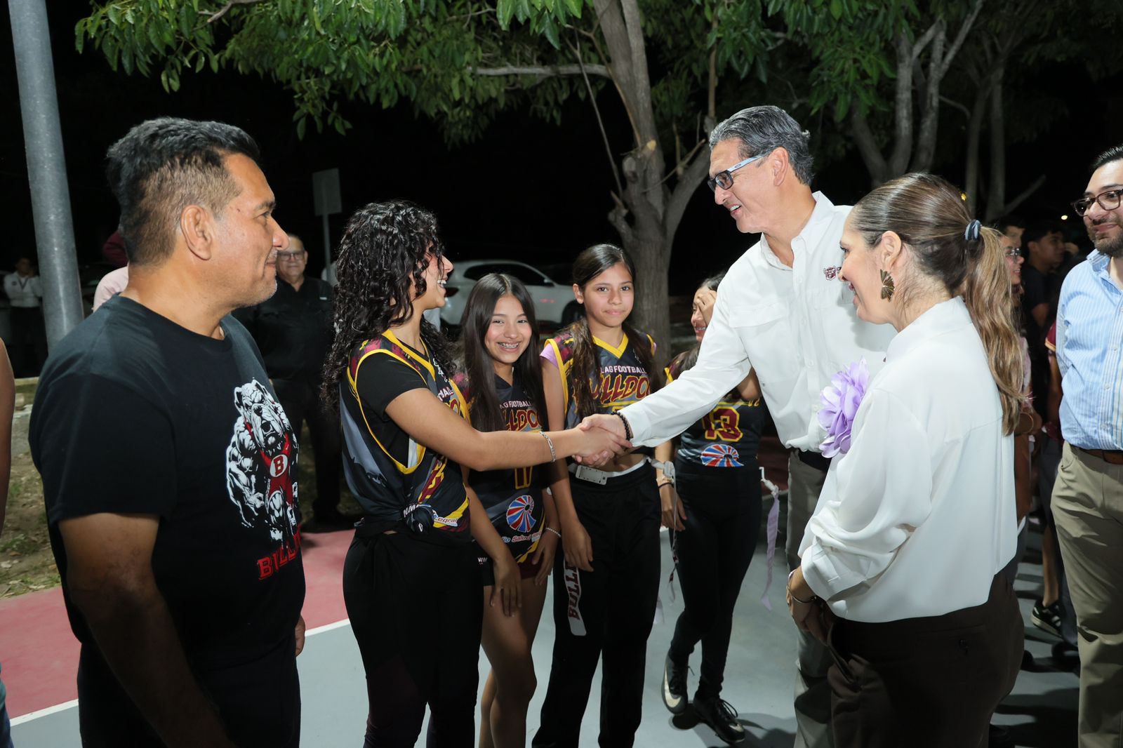 Esta es la cancha número 12 que se restaura, de 35 que existen dentro de la ciudad. Citó, la primera autoridad que en puntos de la ciudad como Arboledas, Hidalgo Oriente en el antiguo rastro; en el mismo sector donde se ubica las oficinas del DIF; en el sector Los Pinos, en la plaza La Pirámide en la Ampliación de la Unidad Nacional, ahí donde se recuperan dos campos de fútbol, la restauración del alumbrado público.