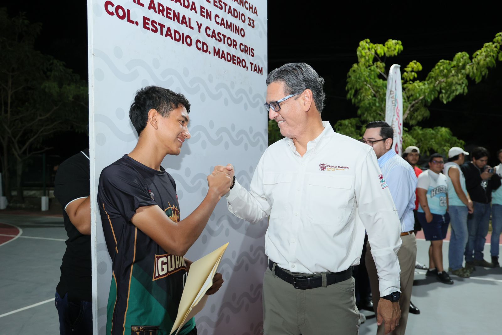 El presidente municipal Erasmo González Robledo inauguró la renovación integral de la cancha multifuncional número 12, ubicada en la colonia Estadio 33, como parte de las acciones del gobierno actual. Además, se realizaron mejoras en el alumbrado público, transformando este espacio en un punto de encuentro para la práctica deportiva y la convivencia entre niñas, niños, jóvenes y adultos mayores, con el objetivo de fomentar un entorno saludable para la comunidad.