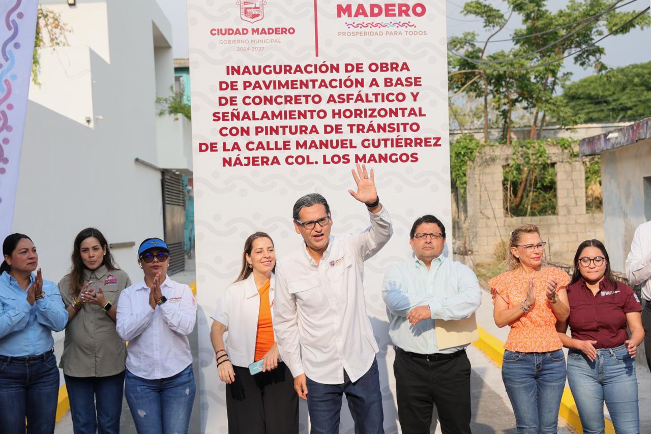 El presidente, acompañado de su esposa Dunia Marón Acuña, presidenta del sistema DIF, así como de síndicos, regidores y el director del Instituto Franklin, Mtro. Alberto Domínguez Govela, reafirmó su compromiso ante los padres de familia de continuar con la construcción de más calles, destacando la importancia de la Manuel Gutiérrez Nájera, que había permanecido intransitable durante años.