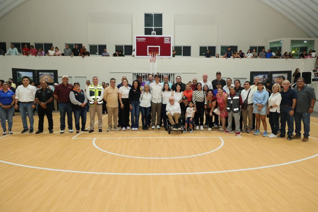 Ante la presencia de familiares del destacado deportista Manuel Martínez Ramos, conocido como "El Mexicano", y de atletas que regresan a la duela de este gimnasio, se celebró la rehabilitación y modernización de este espacio. Este nuevo recinto se suma a las 12 canchas multifuncionales distribuidas en diferentes puntos de la ciudad, así como al Polideportivo de playa y la cancha "Tochito" Bandera, ubicados en la zona turística. Todos estos espacios están destinados a fomentar la práctica deportiva en Ciudad Madero.