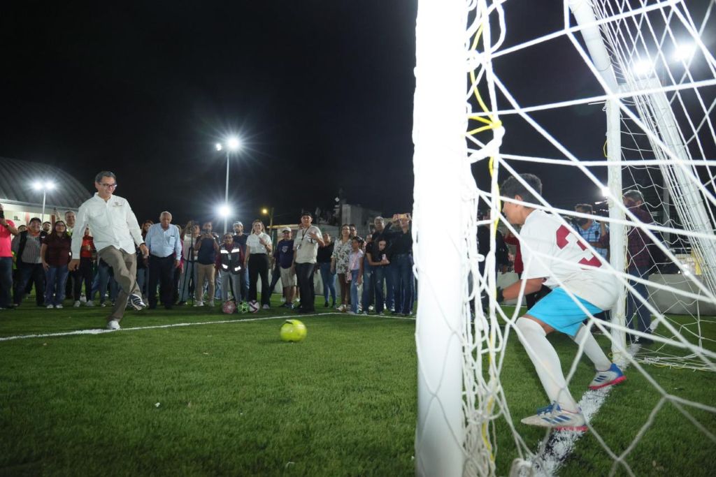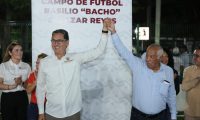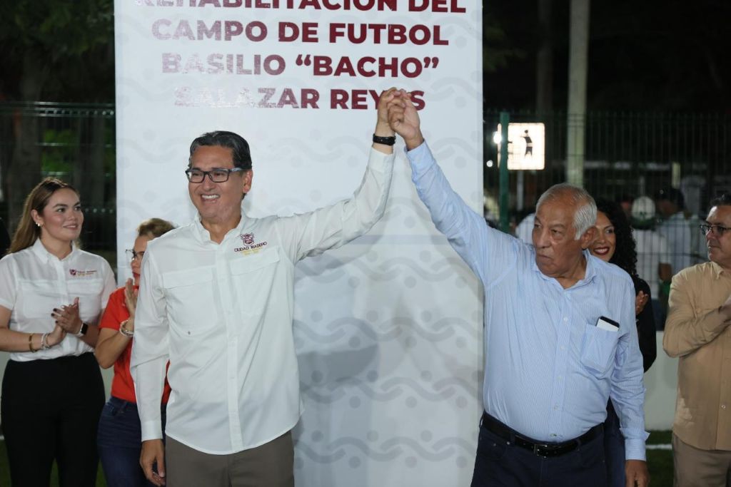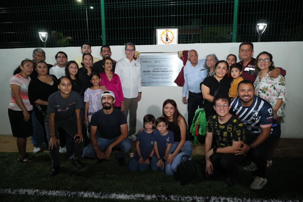 También como parte de esta ceremonia de inauguración de la rehabilitación de espacios de la plaza Vicente Guerrero, el presidente municipal Erasmo González Robledo inauguró la cancha de fútbol de pasto sintético, a pocos días que el Cabildo en pleno aprobara el nombre de Basilio Salazar Reyes, como un reconocimiento a su trayectoria dentro del fútbol profesional y que puso muy en alto el nombre de Ciudad Madero.
