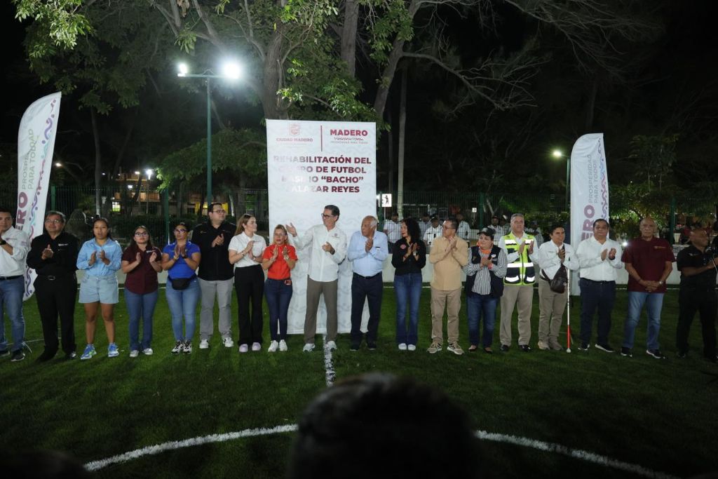 Erasmo González recordó que apenas en el mes de agosto se pusieron en marcha los trabajos, como parte de nuestro compromiso con la comunidad deportiva de Ciudad Madero; y hoy con mucha alegría compartimos esa obra con decenas de niñas, niños, jóvenes y deportistas de todas las edades que han hecho de este espacio, una verdadera cuna de campeones.