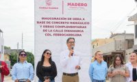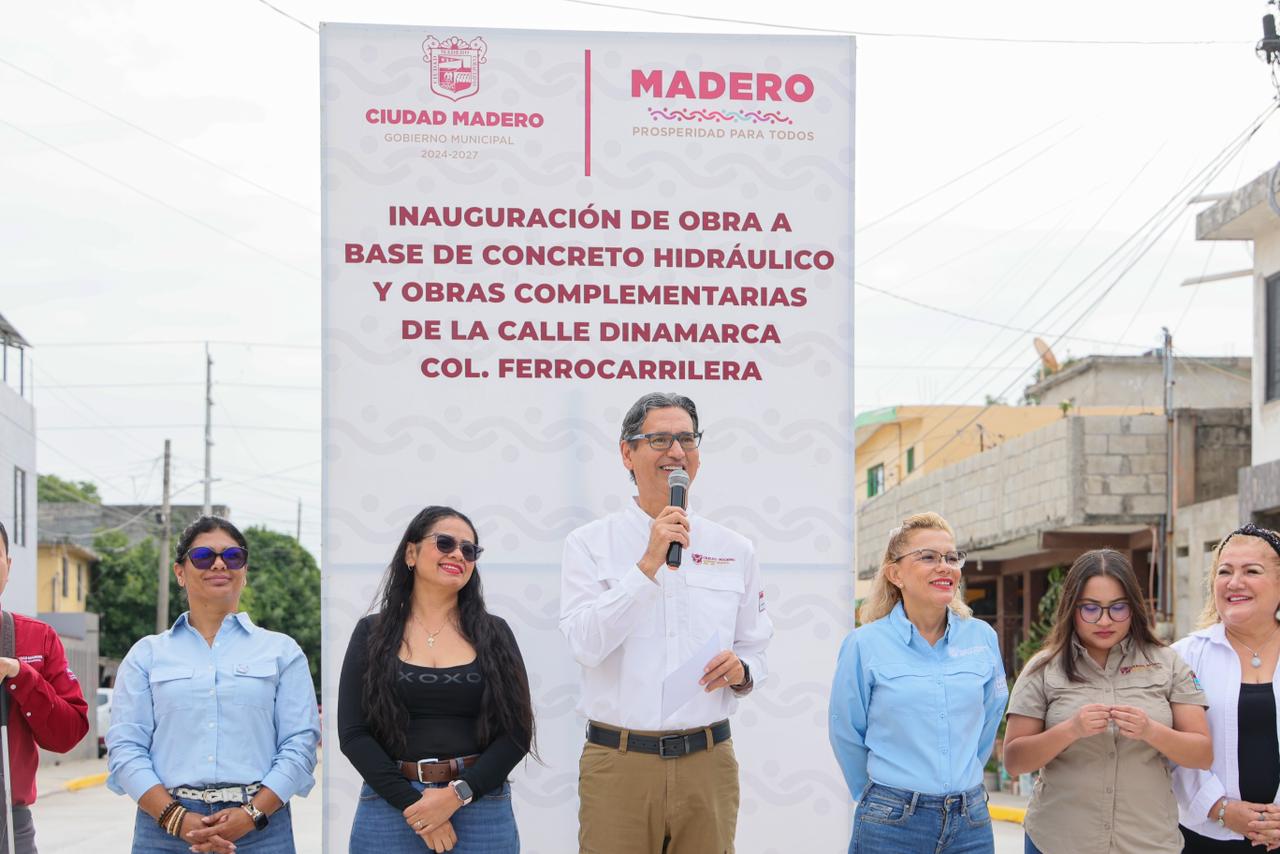 Con una inversión que supera los 2.3 millones de pesos, el presidente municipal Erasmo González Robledo, acompañado Síndicos y Regidores, vecinas y vecinos, inauguró la pavimentación de concreto hidráulico y las obras complementarias de la calle Dinamarca, ubicada en la colonia Ferrocarrilera. Estas obras representan una mejora sustancial para la conectividad y calidad de vida de más familias maderenses.