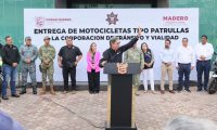 Así lo dio a conocer el presidente municipal Erasmo González Robledo, acompañado por su esposa Dunia Marón Acuña presidenta del sistema DIF, así como de síndicos y regidores, además de autoridades navales, militares, de Guardia Estatal y Protección Civil. Durante la entrega de las nuevas patrullas a los agentes de vialidad, resaltó que ahora estos cuentan con certificación de formación policial de proximidad. Estas unidades que han quedado ya debidamente equipadas para dar un mejor uso, pero sobre todo servicio a nuestra comunidad.