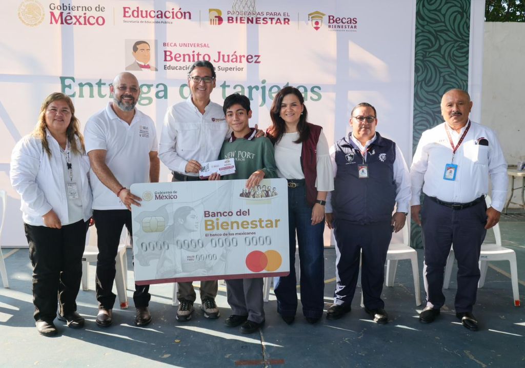 El presidente municipal de Ciudad Madero, Erasmo González Robledo, acompañó al director del CETis 109 Ing. Jorge Vladimir López Beltrán a la entrega de tarjetas correspondientes a la beca Benito Juárez a estudiantes de educación media superior en el municipio. Esta iniciativa beneficia a más de 9 mil jóvenes de la localidad y tiene como objetivo asegurar su continuidad en el sistema educativo, así como disminuir la deserción escolar por razones económicas.