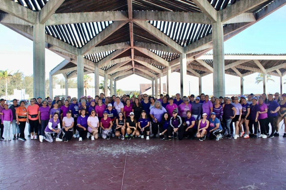 La actividad reunió a decenas de mujeres que, ataviadas con prendas color morado como símbolo de la lucha por la igualdad y el empoderamiento femenino, participaron con entusiasmo en esa dinámica enfocada en promover la salud, el bienestar y la convivencia.